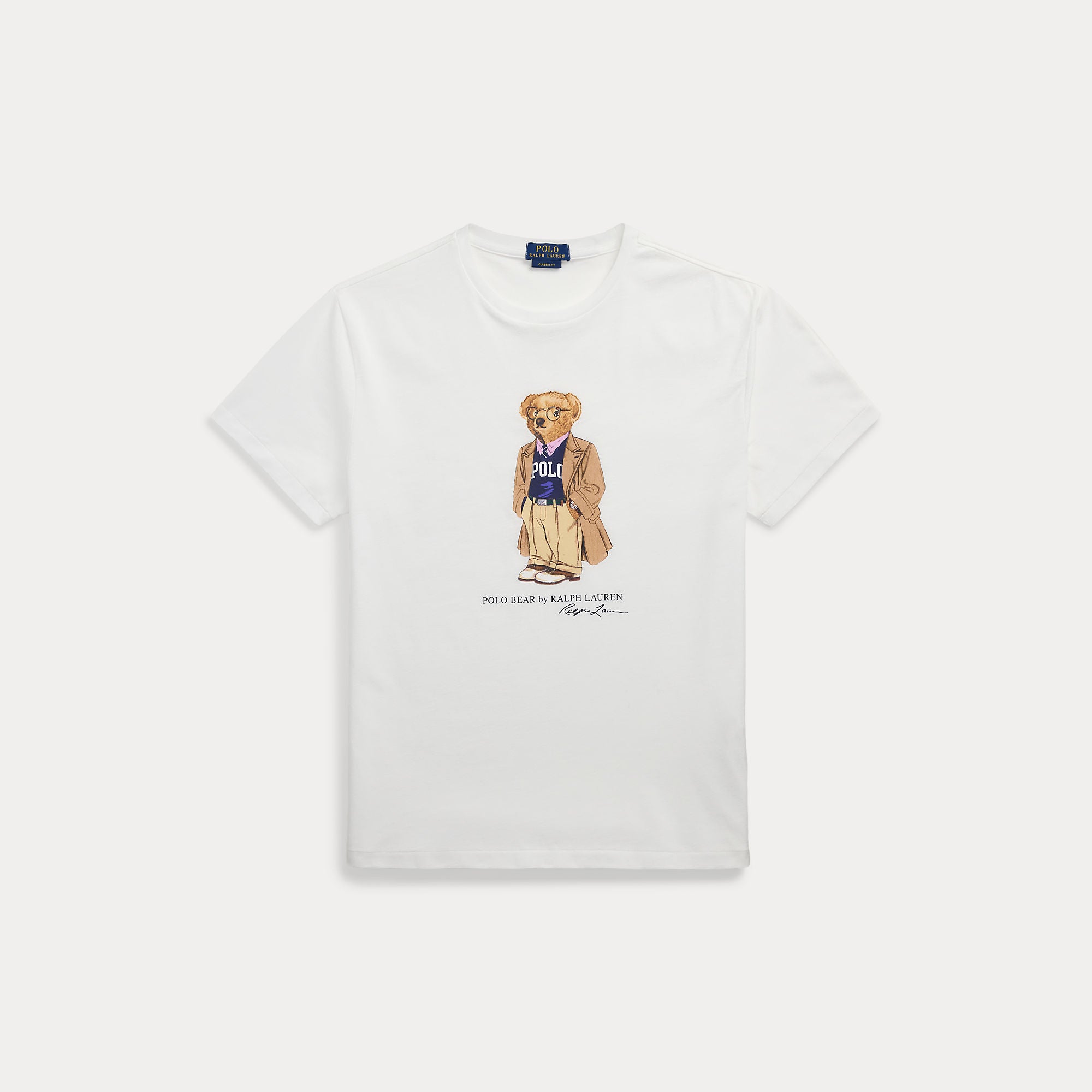 The Collegiate Bear debuted in 1996 in the form of a Steiff plush bear and, six years later, was voted by Polo fans to appear on a sweater for the first time in Ralph Lauren history. Now, the Collegiate Bear is back on this cotton T-shirt and with a few stylish updates—tortoiseshell glasses and a Polo-emblazoned pullover.
