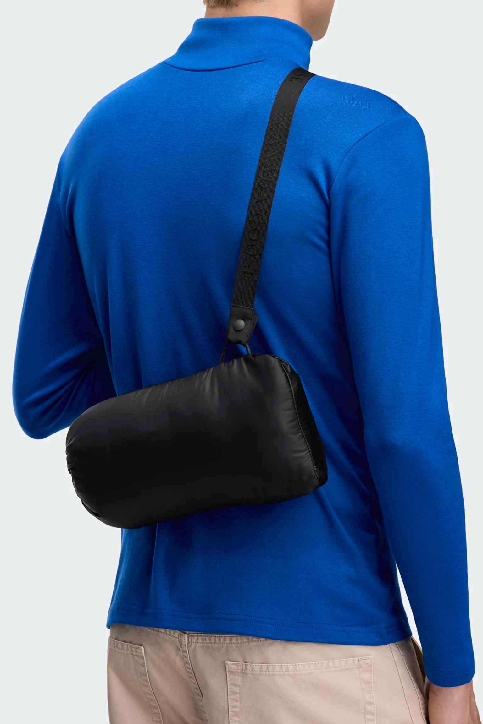 - Packable into interior left pocket. Converts into a cinchable bag with a carrying strap