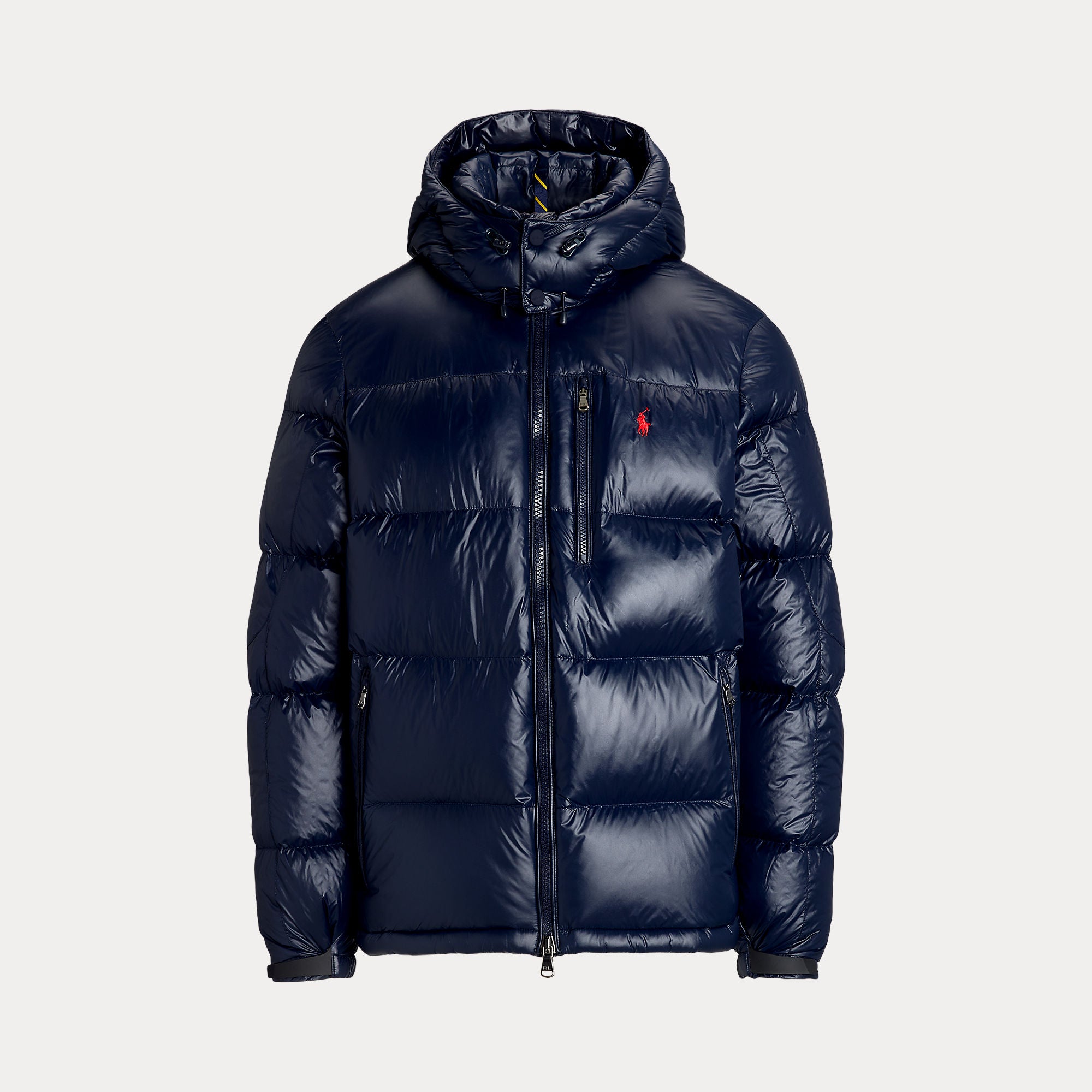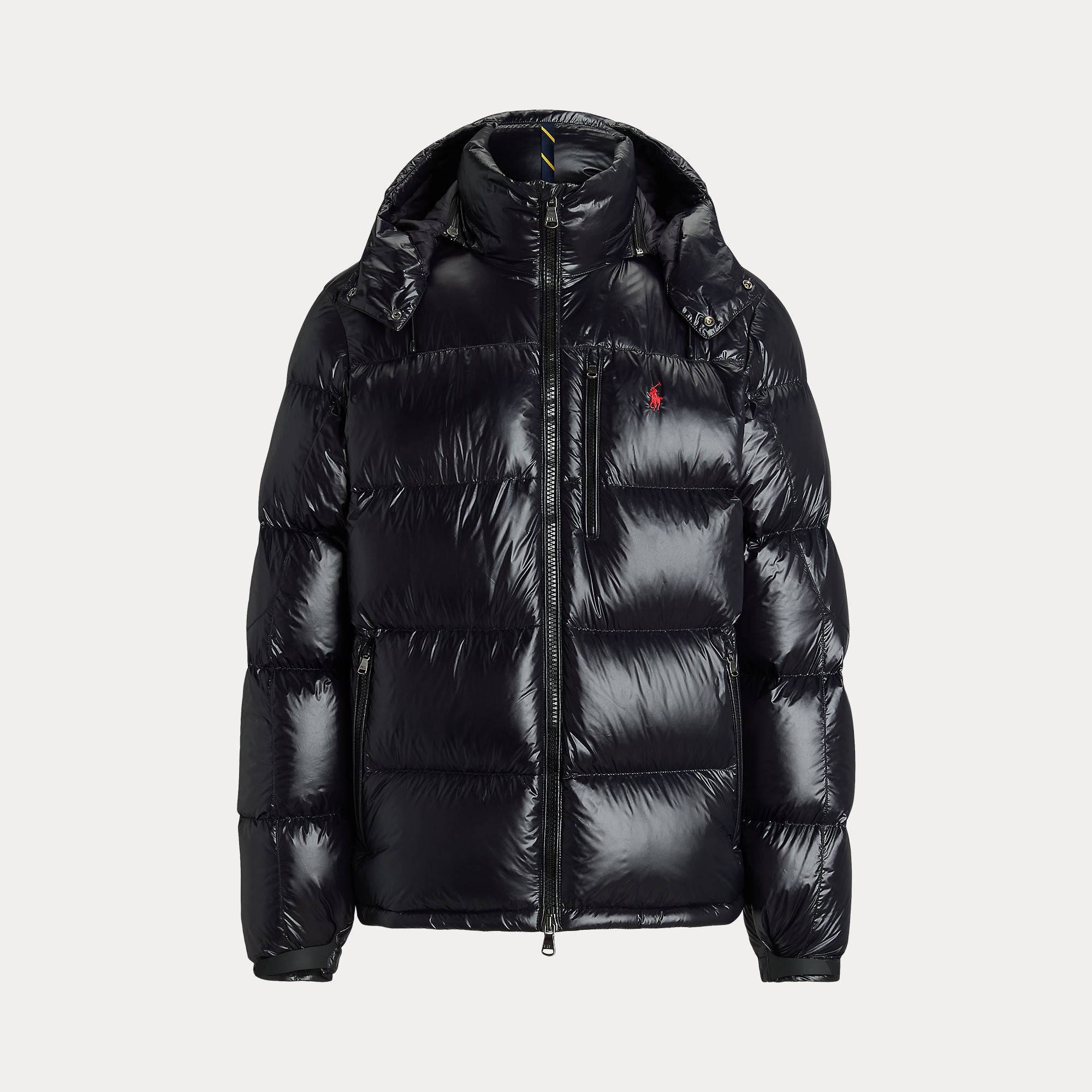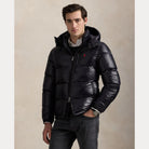 Made from water-repellent ripstop fabric, this glossed jacket is insulated with 650-fill-power down and constructed with a detachable hood.