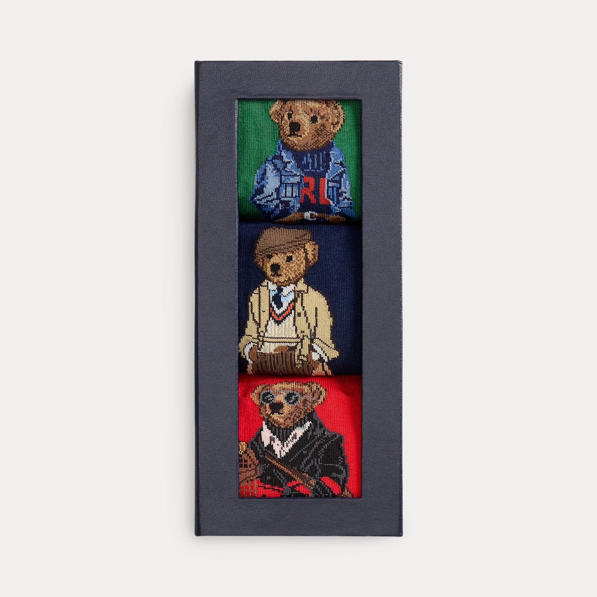 Crafted with combed cotton in a chunky rib–knit construction, the crew socks in this boxed gift set are embroidered with the Polo Bear dressed in three iconic Ralph Lauren looks.